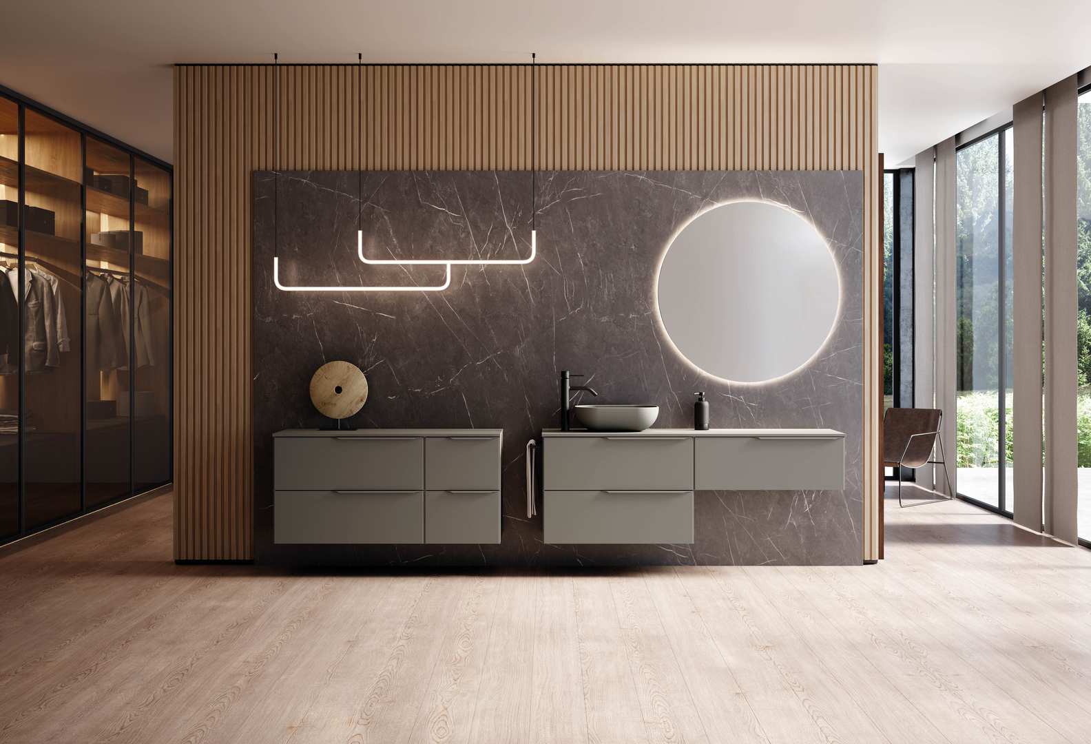 Enfocados en familias o baños grandes donde el almacenamiento extra es esencial. Suelen incluir lavabos dobles y cajones de gran capacidad.