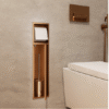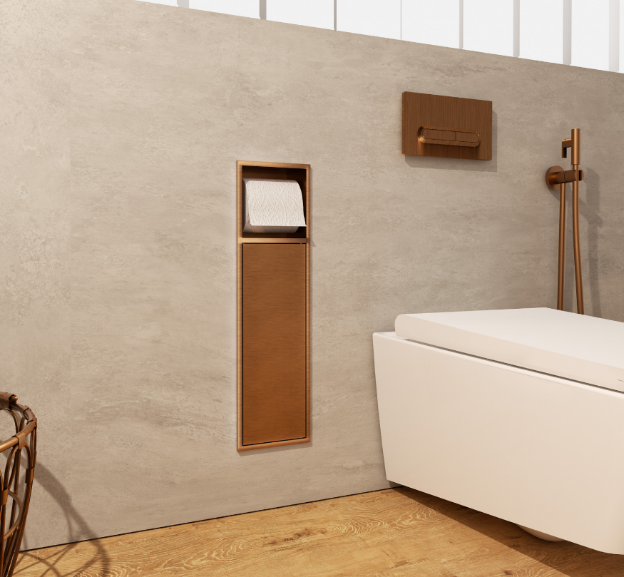 Escobillero empotrado en color rosa para el papel higienico y la escobilla.