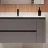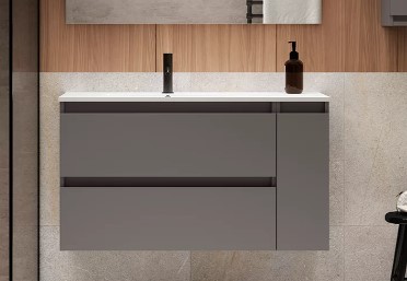Mueble de baño en color ceniza de 100cm, suspendido con dos cajones y una puerta que permite la facil limpieza y una gran capacidad de almacenaje.